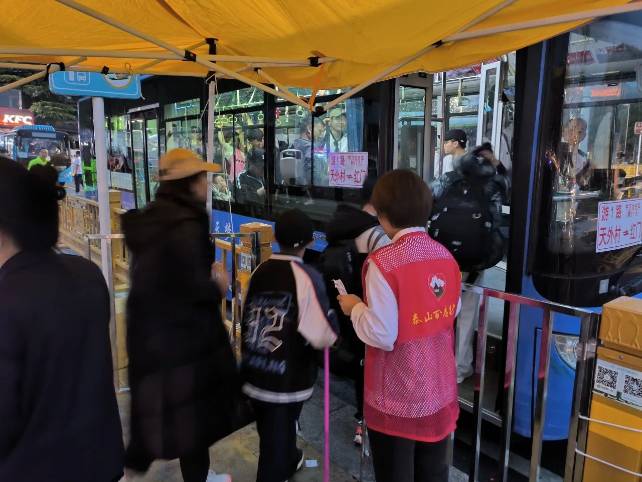 考慮到五一期間老年乘客和兒童增多,志愿者們特別關注特殊群體的需求。在公交車進站時,他們主動攙扶行動不便的老人上下車,幫助家長照顧好動的兒童,確保他們安全落座。遇到攜帶大件行李的乘客,志愿者們也會毫不猶豫地伸出援手,幫忙將行李放置妥當。一位來自外地的游客感慨道:“剛到泰安就感受到了這座城市的熱情,這些志愿者就像家人一樣,太貼心了!”